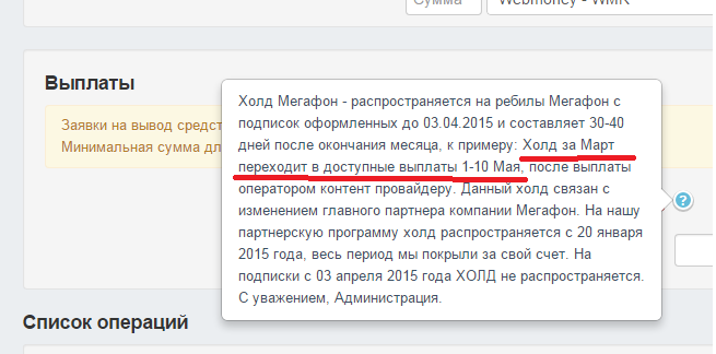 Мы же кредитуем за свой счет уже начиная с 1 февраля, тоесть более 100 дней, в связи с этим мы и ввели холд. Ни одна из партнерок - не имеет таких средств для содержания холда.