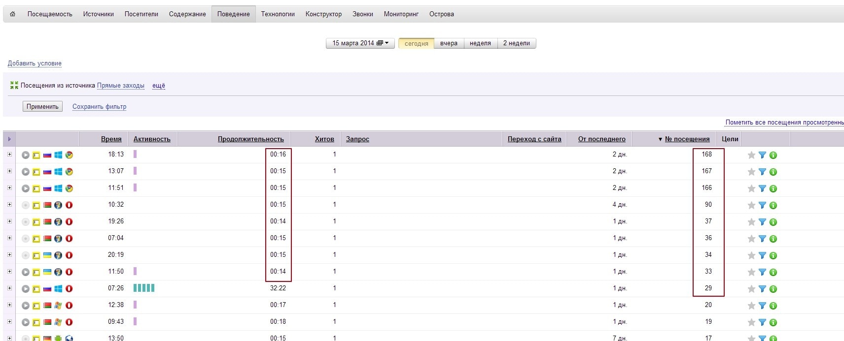 В метрике фиксируются множественные повторные короткие посещения без активности (15 сек).