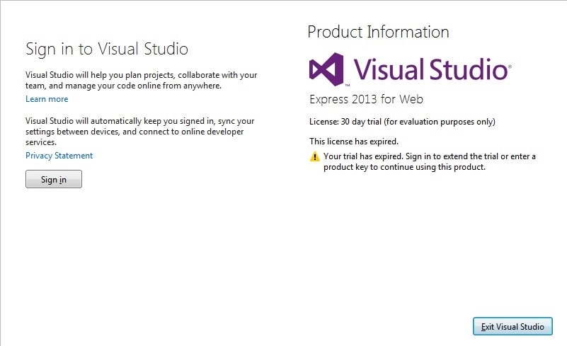 Всем привет. Сейчас очень злой, поэтому не судите строго. Уже 6-ой или 7-ой час пытаюсь установить: Visual Studio 2013\2010. Первое что я сделал скачал 2013 Ultimate. При запуске выбило сразу мол лицензия закончилась О_о. Странно подумал я т.к написано тестовый период 30 дней. Думал сейчас ключик быстро введу и пойду дальше. Начал искать куда можно его запихнуть - оказалось только в саму программу в Help или что-то в этом роде, но соль в том что появляется окошко с тем что срок использования истек и добраться до этого меню, увы никак.