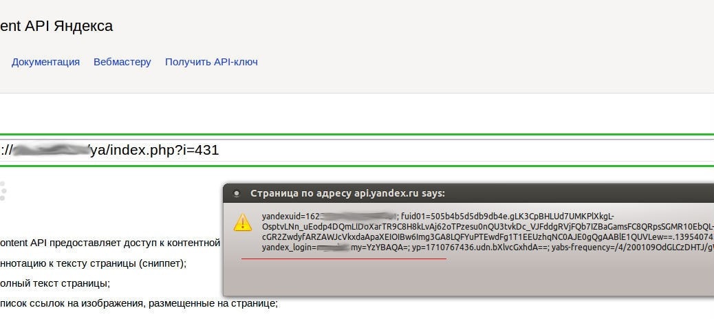 Нами была обнаружена критическая XSS (англ. Сross Site Sсriрting — «межсайтовый скриптинг») уязвимость на странице API. Яндекс. Ошибка допущена в примере вывода Rich Content API из-за слабой проработанности в безопасности при выводе информации о странице.