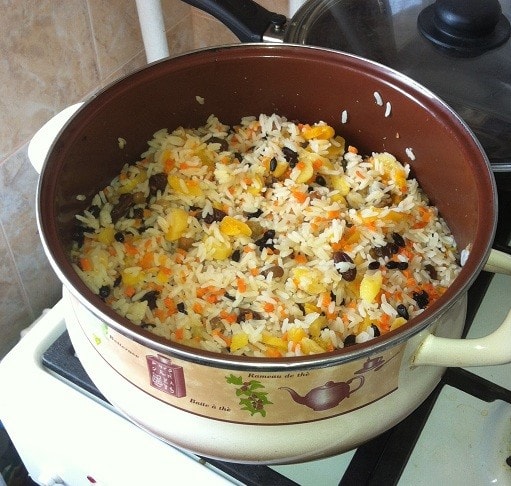на 500 гр риса 250 кураги и 250 изюма 2 столовых ложки сушеной моркови.