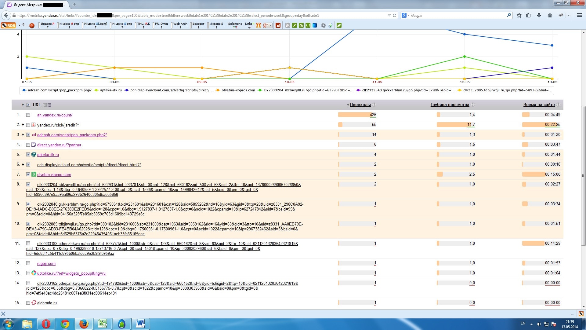 Замечаю уже примерно, 3 месяц в отчёта «Внешние ссылки» в Метрике странные ссылки (см. рис). Что это за странные переходы, сайт на антивирусе проверял, поисковики сайт не вредоносный код не отмечают. Что это?