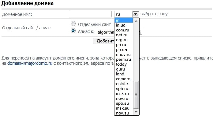 Проблема упирается в интерфейс панели управления Majordomo, где добавить новый сайт на хостинг можно только для доменных зон, перечисленных в выпадающем меню. Мне потребовалось добавить на хостинг сайт в новой зоне expert. Я обратился в саппорт хостинга, меня перекинули на отдел по работе с доменами, сотрудники которого предложили отправить заявку на добавление моего адреса по почте. Я отправил, прождал больше часа, мне так никто и не ответил (хотя на большинстве других хостингов я бы самостоятельно добавил сайт в любой зоне за несколько минут). После чего я попытался опять связаться с сотрудниками саппорта, состоялся следующий диалог: