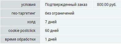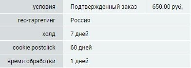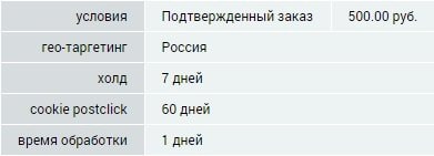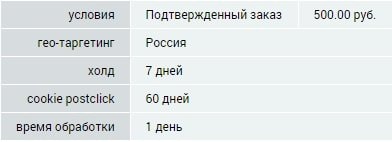 Условия партнерской программы:
