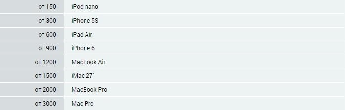 Таблица вознаграждений (единицей считается подтвержденный заказ):