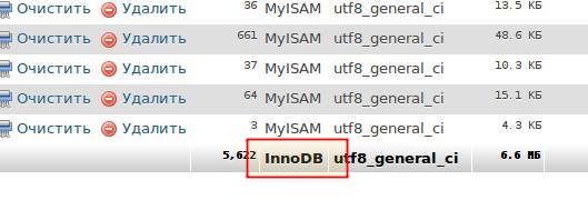 Т.е. в выделенном должно быть MyISAM, а не InnoDB: