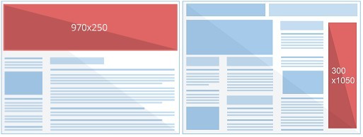 Новые типы рекламных блоков позволяют размещать тексты и изображения. Также данные форматы поддерживают возможность гибкой настройки рекламного блока. В блоке 970 х 250 могут отображаться объявления формата 300 x 250; в а блоке 300 х 1050 - транслироваться объявления формата 160 х 600.