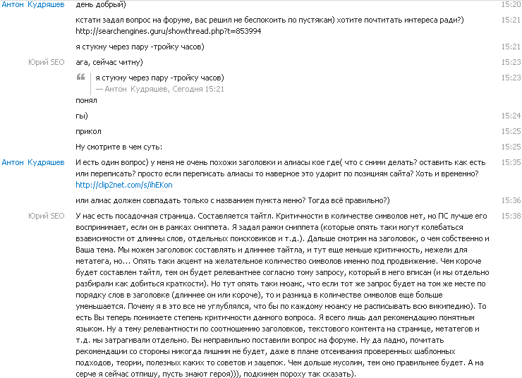 Это правило не есть принципиальным, зависящее от множества не взаимосвязанных и взаимосвязанных факторов. Сниппет под гугл, который будет точно влезать, если он релевантен запросу, оптимальное вписание ключей исходя из таких же рамок по размеру для тайтла (где тоже размер носит только рекомендационный характер и зависит от многих факторов). Под яндекс можно и больше конечно, только ведь подстраиваемся под все ПС, следовательно и конверсия выше. Поймите, это вывод рекомендаций оптимального среднестатистического размера. Еще раз перечитайте мое сообщение выше. Все эти вещи только исходя из личного опыта. Я же не могу теорему выводить за каждым нюансом, потому как буду путать этим самым заказчика. Я всегда и в обязательном порядке разбираю аудит после его изучения, а также отвечаю на все вопросы. Извините, но название темы говорит о том, что у меня не всегда будет время комментировать каждый вопрос.