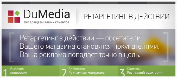Компания DuMedia в партнерстве с компанией admitad предлагает вебмастерам новый инструмент монетизации своих сайтов — баннерный ретаргетинг. Это инструмент для монетизации трафика через медийную рекламу, но с оплатой по схеме CPA (за целевое действие), а не за клики (CPC) или показы (CPM). О преимуществах баннерного ретаргетинга DuMedia мы расскажем далее.