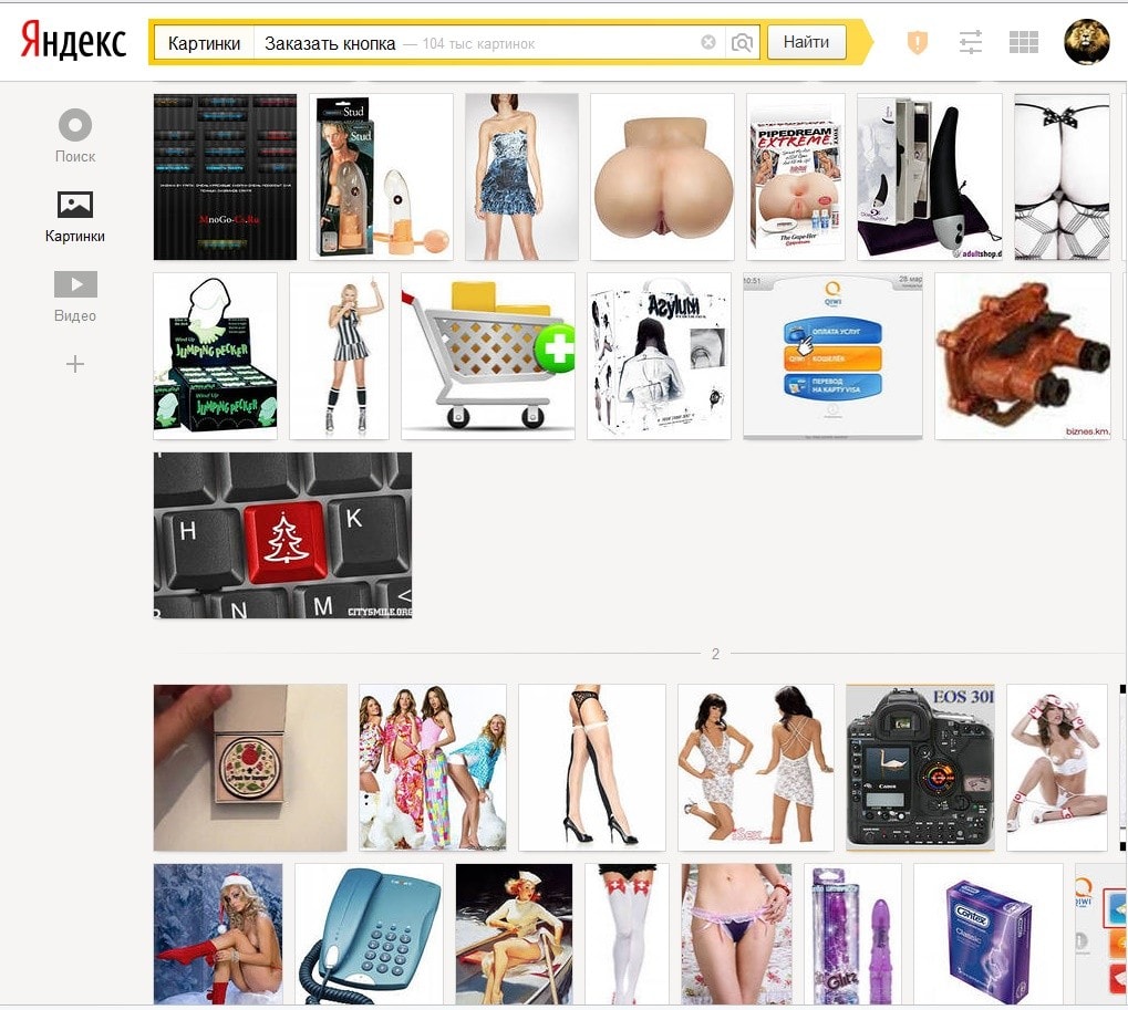Персонализированный поиск. Ничего удивительного. Вы искали сначала что-то из сексшопа, а потом кнопки (а может ваша жена без вас). В результате и получили выдачу с картинками из сексшопа.