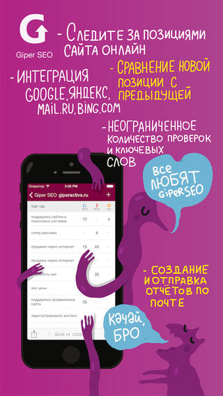 Друзья из GiperActive сделали приложение для проверки позиций по ключевым словам под iOS в поисковых системах. Клиенты просили подобную штуку уже давно, почти у всех есть смартфон (пока только под iOS).