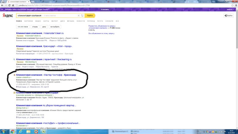 Сегодня долго анализировал выдачу в своей тематике по Краснодару, Давно туда не заходил так как работы много и обнаружил такой ГС в основном запросе клининговая компания, что сравнить просто не с чем.