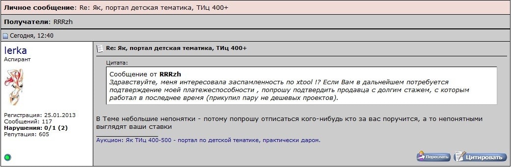 Ставки И в ЛС принимаются, но "скрины" будут выкладываться без затирания ника, во избежании непонятных рассуждений потенциальных покупателей.