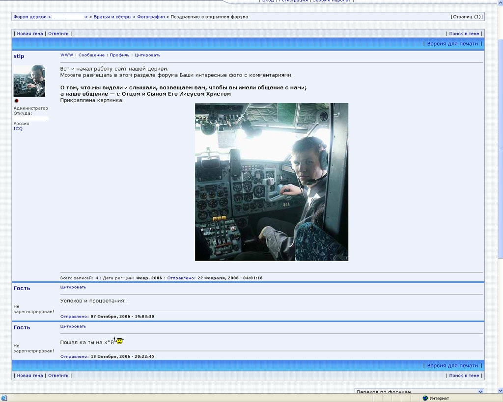 В-общем, предыстория такова: на нескольких форумах одного небольшого Российского города начал активно спамить один чел. Спам его сводился к пропаганде некой секты, активно распространенной в Украине, и именующей себя такой-то церковью (название не пишу, чтобы не пиарить). Спамер пиарил как саму секту, так и конкретный URL сайта и форума.