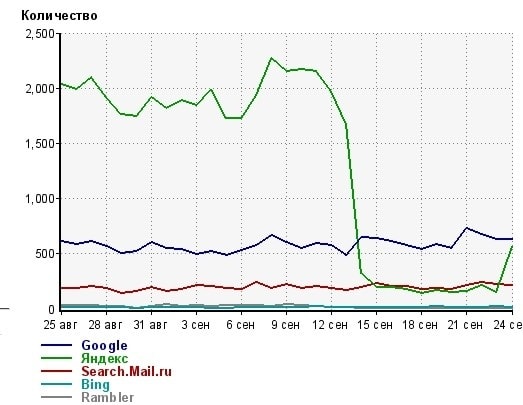 Народ, ну как там с трафом? В полном объеме вернулся или нет? У меня пока вот такая стата у упавшего 14 сентября сайта. Как видим, пока позиции расти не торопятся, трафа прибавилось с 200 до 600 всего.