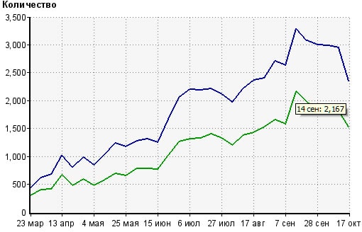4) До 14 сентября трафик рос, медленно, но рос. После пошел на спад, сейчас упал в 2*