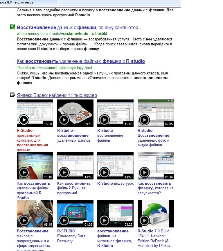 Например, по запросу "восстановление флешки R-studio" и еще по некоторым, в ряде запросов вообще эта портянка видео стоит сразу после третьего сайта, а остальные улетают черт знает насколько вниз.