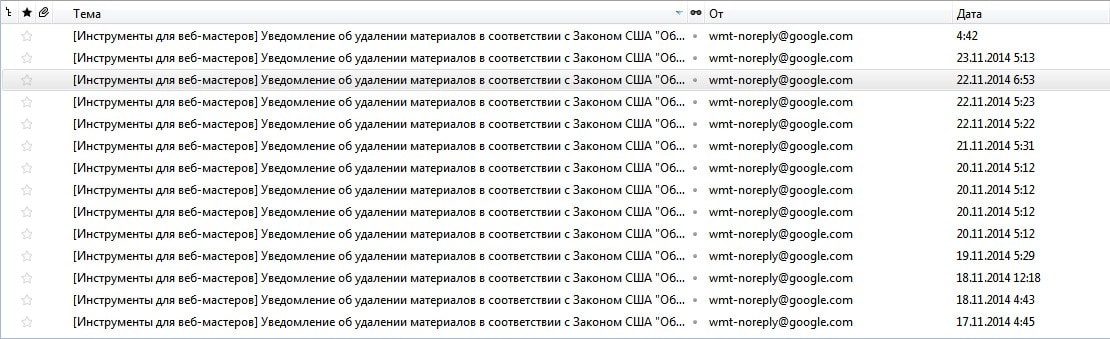 Одна из страниц на сайте попала под DMCA, страница пропала из выдачи, смотрю внизу страницы написано что 1 страница исключена из поиска, кликнул и увидел там на сайте chillingeffects.org мою страницу среди нескольких других. Письмо об этом в вебмастер гугла не приходило.