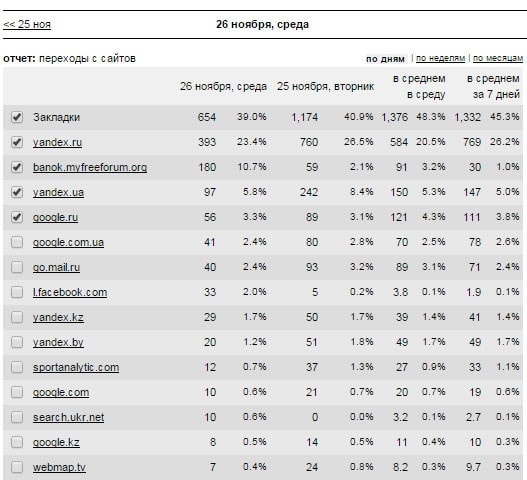 Доля закладочного трафика ~50% что говорит о его постоянстве и независимости от ПС.