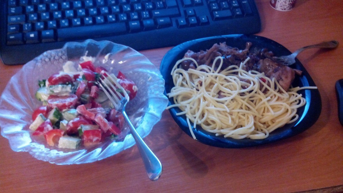 У Михи вон обед в 9 часов вечера, и у меня сегодня примерно так же.