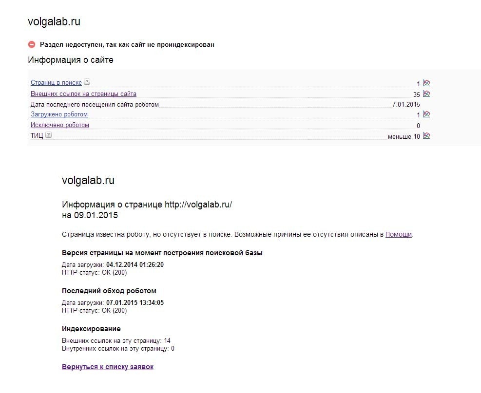 У меня тоже висела долго только главная страница в поиске, а потом и она исчезла(пропала).