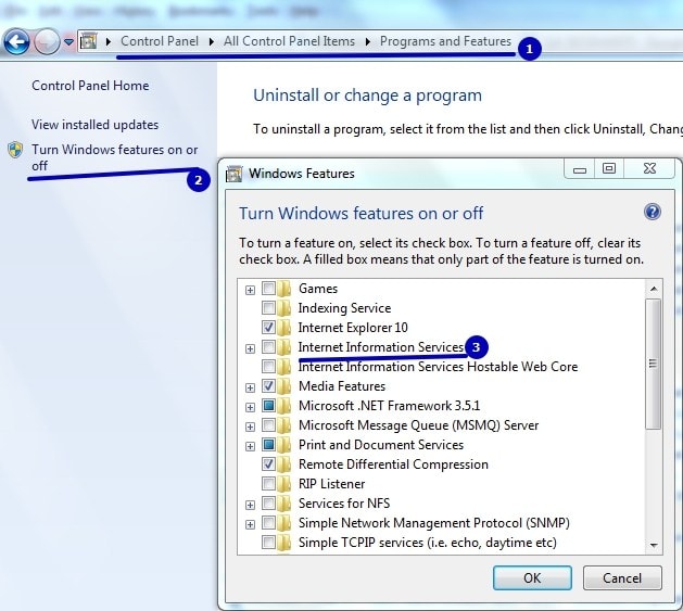 Если у вас порт 80 занят, даже когда вы убрали в настройках Skype чекбокс, разрешающий использовать этот порт, то необходимо зайти в винду и выключить пункт (3) на скриншоте.