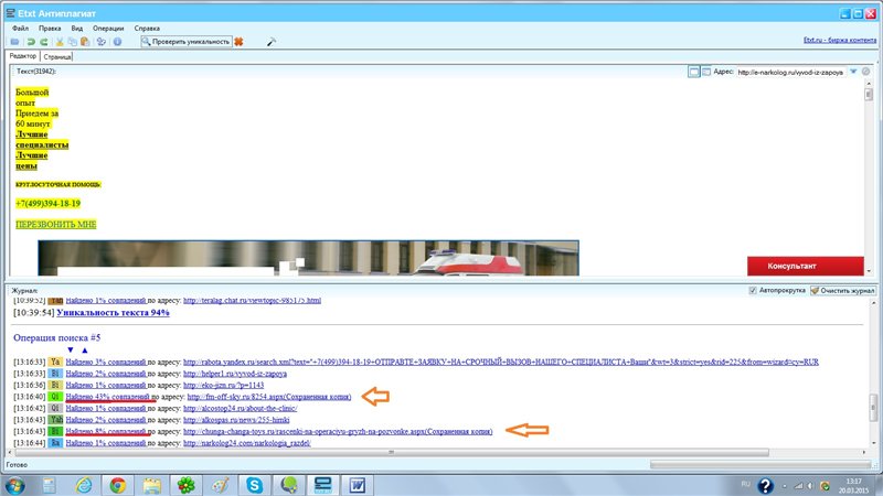 Проверяю уникальность страницы сайта через программу Etxt по урлу и программа мне показывает, что наша страница есть в сохраненной копии другого сайта, не пойму зачем она там и влияет ли это на уникальность страницы нашего сайта, так программа выдала уникальность страницы = 2%, хотя не позднее месяца назад я повесила туда абсолютно новый текст с уникальностью в 100% и теперь даже поменяв текст на странице все равно уникальность не поднимается выше 56%