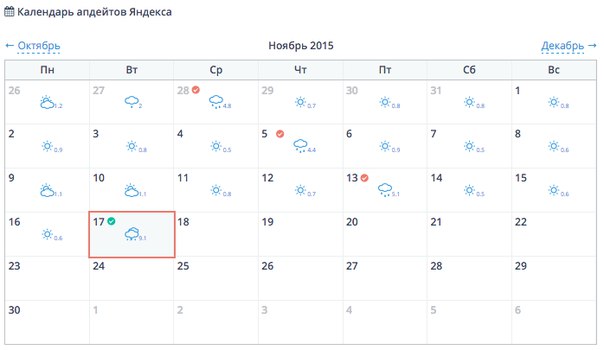 Апометр научился фиксировать текстовые апдейты (обновление поисковой базы). Теперь у нас два типа событий на календаре: зеленые и красные дни :)