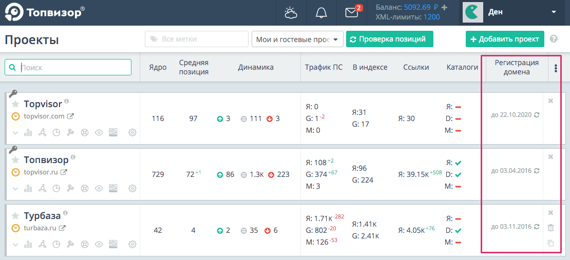 Появилась возможность вывести данные о регистрации домена в сводке проекта. Может оказаться полезным напоминанием.