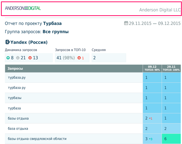 Неожиданно для себя разработали возможность брендировать отчеты под ваше агентство или компанию.