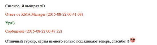 Он получил 20 000 рублей и вот так откоментировал свою победу нашему менеджеру по саппорту: