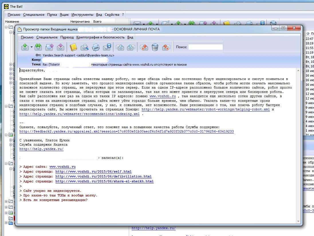 На вопрос в июне 2015 в Yandex.Search support: "Что ж у вас так печально всё с индексацией?", Платон Щукин пишет: "Приведённые Вами страницы сайта известны нашему роботу, по мере обхода сайта они постепенно будут индексироваться и смогут появиться в поисковой выдаче. Но хочу заметить, что процесс индексирования сайтов организован таким образом, чтобы роботы могли скачать максимально возможное количество страниц, не перегружая при этом сервер. Если на одном IP-адресе расположено большое количество сайтов, робот просто не сможет скачать все страницы, обход которых он запланировал, так как это может привести к перегрузке севера или блокировке робота.