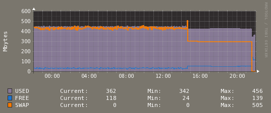 Но то, что у вас активно используется swap, говорит о том, что или какое-то ПО криво сконфигурировано, или серверу действительно мало памяти для нормальной работы. Например, если у вас тяжёлый сайт с бешеной посещаемостью и базой данных на 10 ГБ.