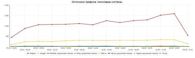 График одного из экспериментальных дорвеев за последние три месяца. Яндекс, очищай экосистему, ага :D