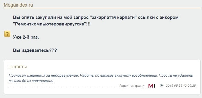 25 мая опять закупили ссылок по тому же анкору "Ремонткомпьютероввиркутске" вместо "закарпатье карпати".