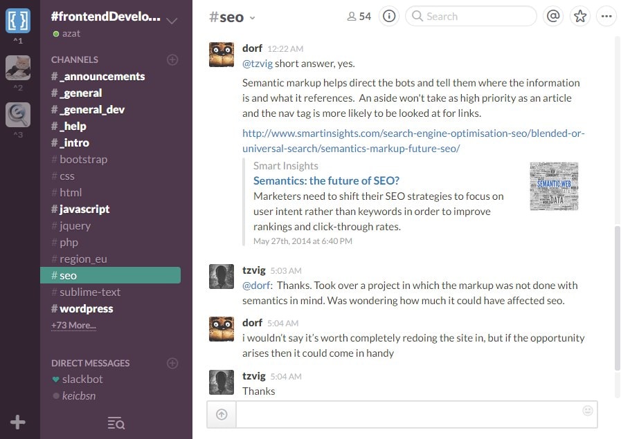 Запилили конференцию в Slack для сеошников. Попросить инвайт можно тут: http://goo.gl/forms/ENi0u2N2no