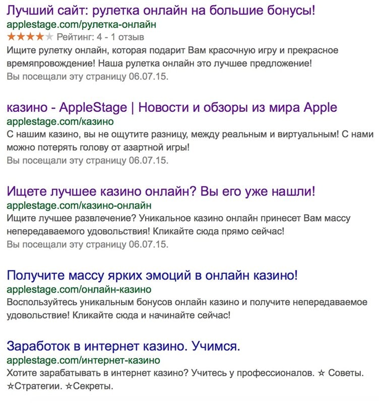 Если хотите увидеть как эти страницы выглядят. Запрос в Гугле: ?p=казино-онлайн