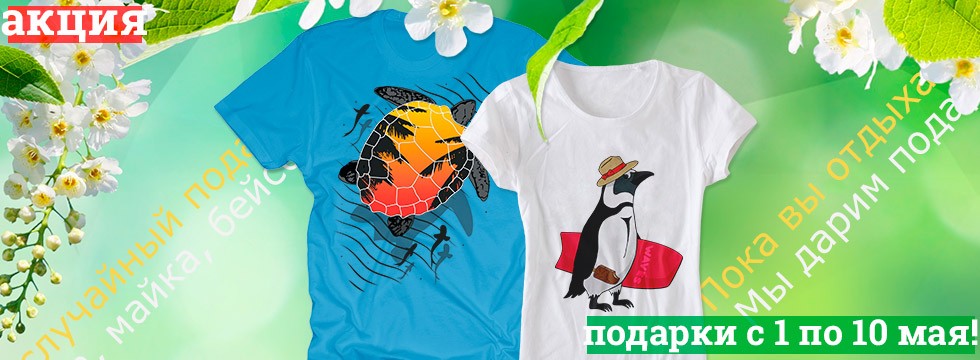 Каждый ВАШ клиент, при заказе с 1 по 10 мая, получит в свою посылку случайный товар (от майки до толстовки).