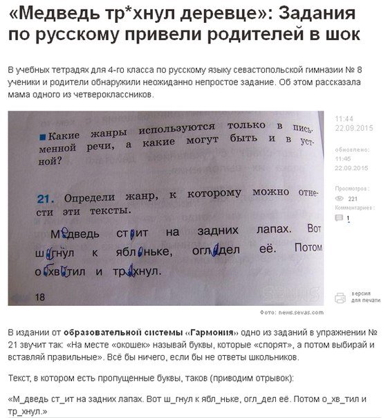 "Все бы ничего, если бы не ответы школьников... как показала практика, слово «тр*хнуть» через «а» для детей звучит гораздо привычнее " (c)