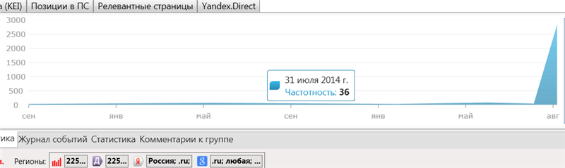 Начал проверять одну из тем на сезонность. и обнаружил, что широкий запрос без изменений , а вот его подгруппа очень резко выросла по всем запросам в августе, пример: