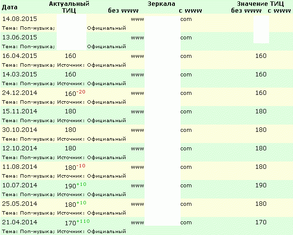 Средний показатель тиц за последних 5 лет - Тиц 150