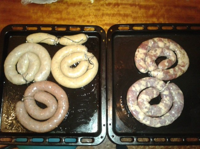 Готовлюсь к Рождеству:) решил сделать домашние колбасы: мясная с обезательным индигриентом семена горчицы, картофельная с лучком, ну и кровянка - только крови не было и затестил с печенью и гречкой, норм получилось )