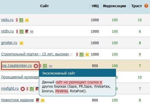 Дается ли значок эксклюзивный сайт если сайт продает ссылки в ггл и миралинск (проекты мирафокс)?