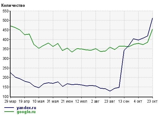 по Яндексу увеличились заходы примерно в 4 раза