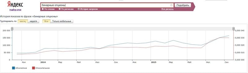 Тематика бинарные опционы довольно узкая, однако круг потенциальных клиентов намного шире термина «бинарные опционы», дело в том, что тема очень молодая (2-3 года), постоянно растет и еще далеко не достигла своего пика.