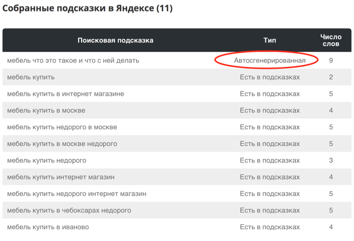 Подскажите плиз можно ли в KeyCollector реализовать определение "автосгенерированных подсказок" как в этом сервисе?