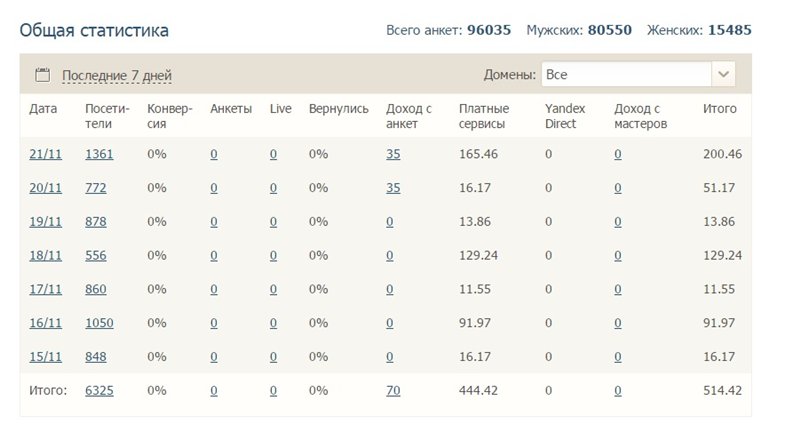 Какой средний доход на длительном периоде с 1 женской анкеты в среднем?