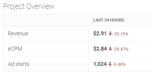 Доход с рекламы в среднем 2.5 - 4$ в день, подключена Unity ads