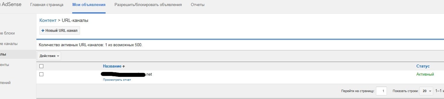 В URL каналы добавил сайт - статус АКТИВНЫЙ. (зеленого цвета)