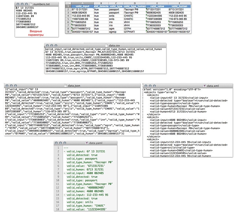 Результат передается покупателю сразу в нескольких форматах: CSV, JSON, YAML, XML, Excel. На скриншотах выше как раз все они показаны.